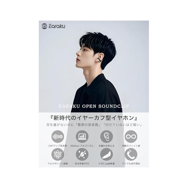 商品名:【音質至上主義・アクセ感覚のイヤーカフ型】 Earaku (イアラク) SoundClip ワイヤレスイヤホン オープンイヤー イヤホン イヤーカフ型 超軽量 耳を塞がない 耳挟み式 音漏れ無し 骨伝導の革新 DSP機能 Malleusアルゴリズム オープンイヤーヘッドホン 業界トップ音質 48時間再生 Bluetooth5.4/マルチポイント接続/2025年新登場 (グレー)