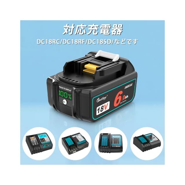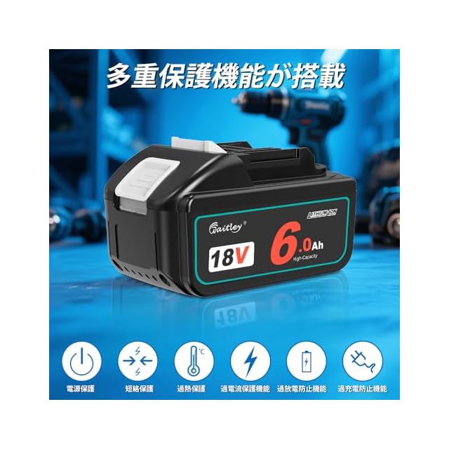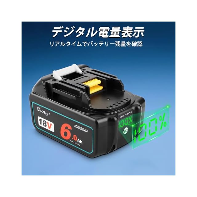 商品名:Waitley マキタ18V バッテリー互換 6.0Ah 2個セット 確実にカットオフ機能、過電流保護、過放電防止機能など多重回路保護機能が搭載 デジタル%残量指示付 大容量電池 6000mAh BL1860B 最新セル採用 高耐久性 電動工具用 バッテリー マキタ18V電動工具に対応 BL1840 BL1850 BL1850B BL1860対応 PSE、CEマーク取得済み