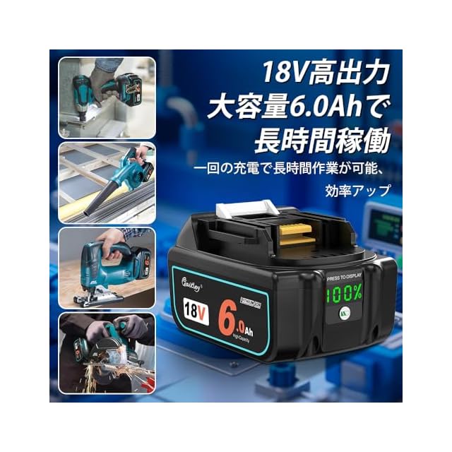 Waitley マキタ18V バッテリー互換 6.0Ah 2個セット 確実にカットオフ機能、過電流保護、過放電防止機能など多重回路保護機能が搭載 デジタル%残量指示付 大容量電池 6000mAh BL1860B 最新セル採用 高耐久性 電動工具用 バッテリー マキタ18V電動工具に対応 BL1840 BL1850 BL1850B BL1860対応 PSE、CEマーク取得済み