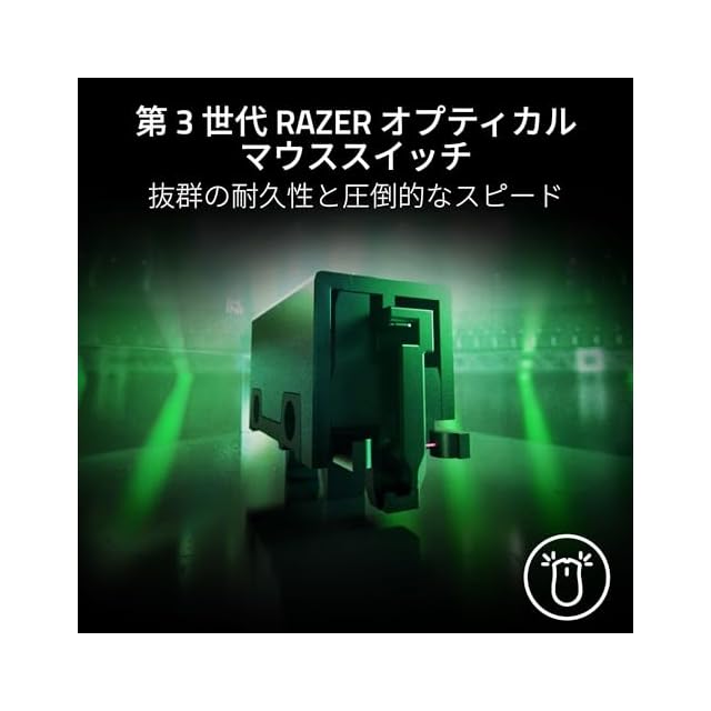 【第 3 世代 Razer オプティカルマウススイッチ】 二重クリックの問題を排除しながら、耐クリック回数を 9,000 万回に改善。デバウンスディレイなしのわずか 0.2 ms のアクチュエーションを備え、他を圧倒する信頼性とスピードを発揮します。"