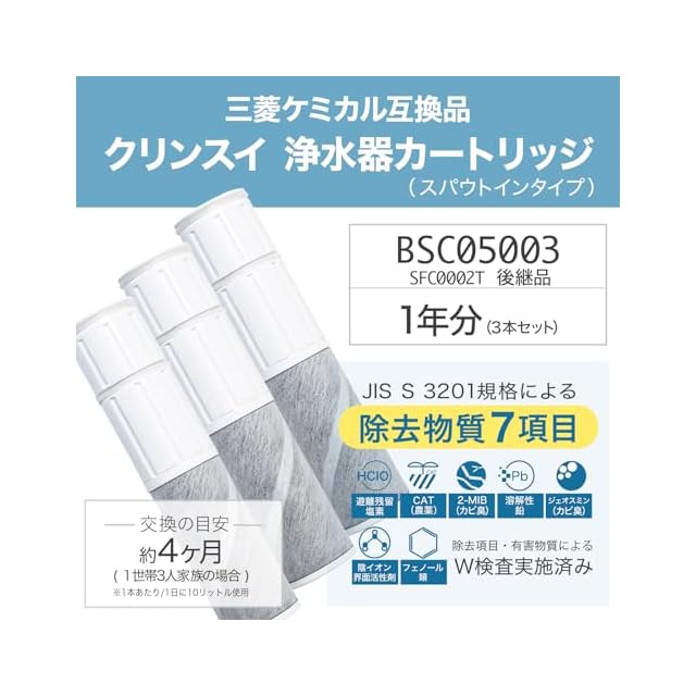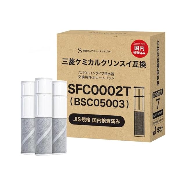 【JIS規格日本検査済み】クリンスイ対応 浄水カートリッジ SFC0002T 互換品(BSC05003・SFC0002TTS・ZSRJT002R12BC・FP1025・PZ871-3同等)7項目除去 スパウトインタイプ 水栓一体型浄水器用 3本セット
