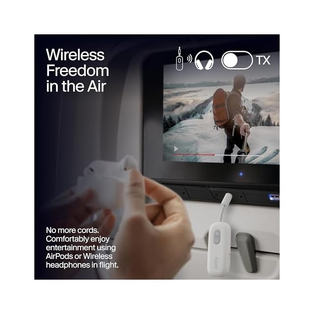 もうケーブルは必要ありません :3.5mmイヤホンジャックさえあれば、飛行機内のモニターでもジムのトレーニングマシンでも、そしてゲーム機器やテレビでもワイヤレスでサウンドを楽しめます。ふだんお気に入りのAirPodsなどのワイヤレスイヤホンを場所を選ばずお使いいただけます。