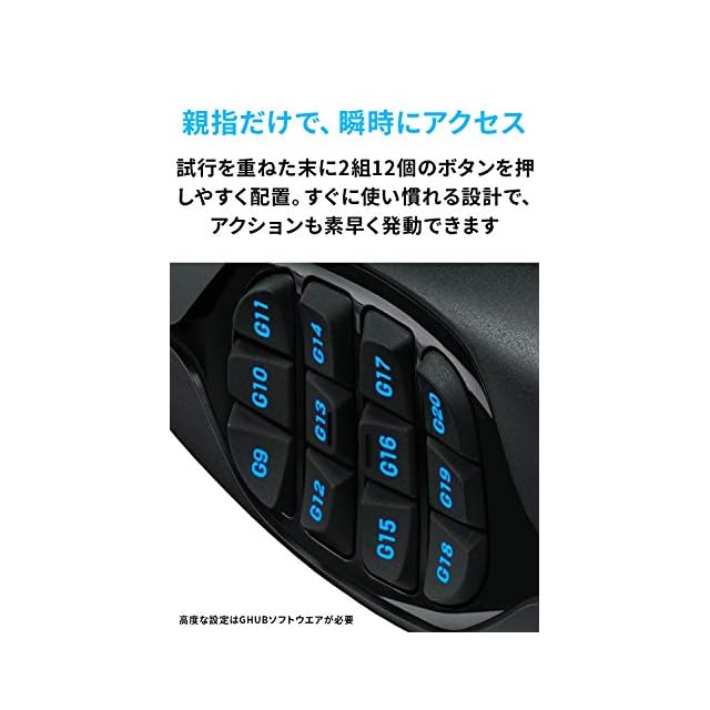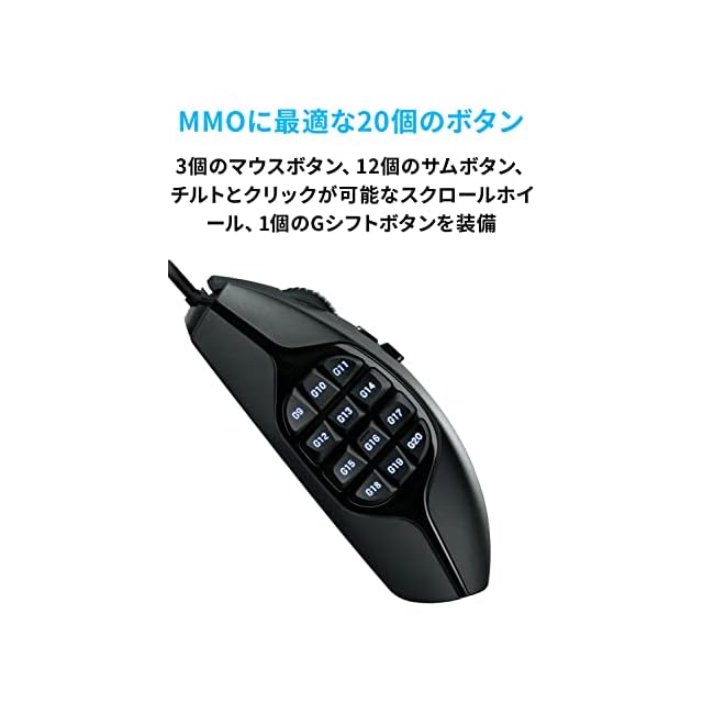 【Logicool G G600t MMO 有線ゲーミングマウス】G600tは20個のボタンを搭載し、優れたカスタマイズ性と使いやすさを両立しましたMMOゲームに最適化ゲーミングマウスです。