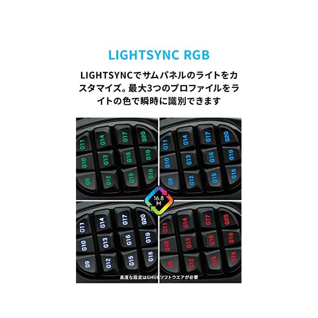 【20個のGキー装備】3つのプライマリボタン、12個のサムボタン、左右のチルトボタン、スクロールホイール、そしてGシフトボタンを搭載し、それぞれのボタンにプログラミング、ボタン割り当ておよびカスタマイズすることが可能。