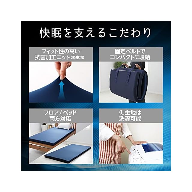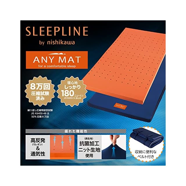 nishikawa 【 西川 】 エニーマット マットレス シングル 高反発 寝返りサポート エアホール加工 通気性 年中快適 抗菌加工 洗濯可能な側生地 折りたたみ 収納用固定ベルト付き ベッドでも床でも使用OK 敷き布団 ベッドマットレス ANY MAT スリープラインby nishikawa ネイビー 246057293 【最大30日間お試しサービス対象】