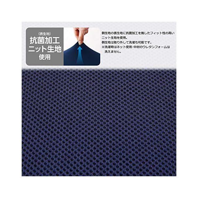 側生地は表生地に抗菌加工を施したフィット性のあるニット生地を使用。側生地は取り外して洗っていただけるのでいつも気持ちよくお使いいただけます。(※洗濯ネットをご使用ください。中材のウレタンフォームは洗えません。)
