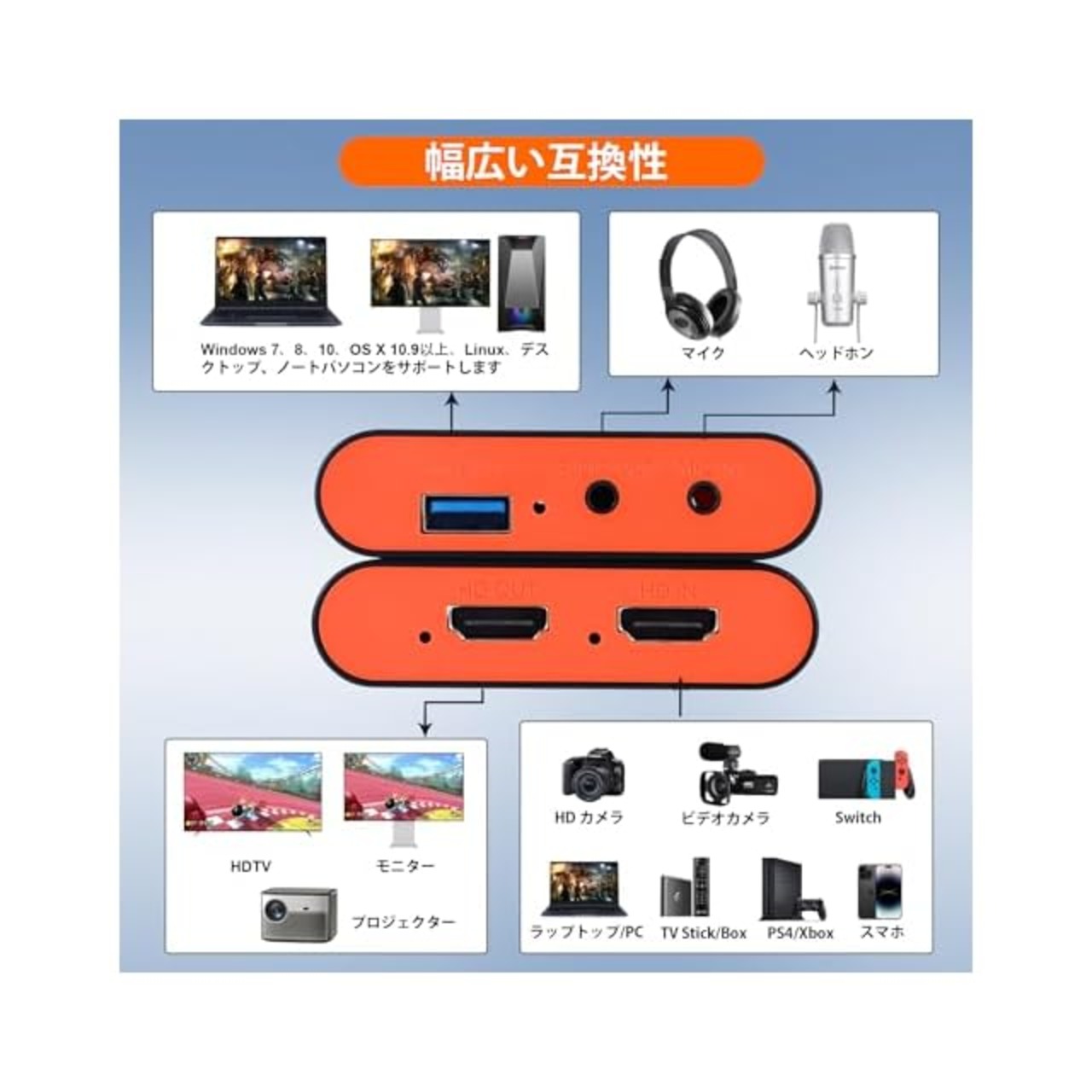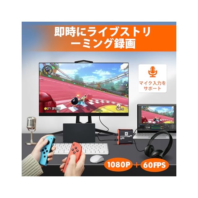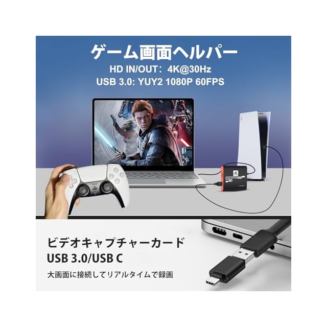 商品名:キャプチャーボードは4K HDMI パススルー機能を搭載しています 1080P 60Hz USB 3.0 ビデオゲーム キャプチャーカード 高速転送 低遅延 ゲーム実況生配信ライブ、ビデオ会議録画、リアルタイムストリーミング 画面共有 Switch PS5/PS4 Xbox Wiiuに対応 Mac/Windows/Linux/Android/iPad OS17に適用