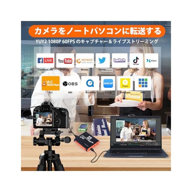 【広範な互換性】ビデオキャプチャーは、Windows 7/8/10/11、Linux、Mac OS、Android 5.0以降などの多くのオペレーティングシステムと互換性があります。OBS、TikTok、YouTube、Twitter、Facebook Liveなどの複数のストリーミングプラットフォームに対応し、ユーザーがさまざまな環境でスムーズに使用できることをします