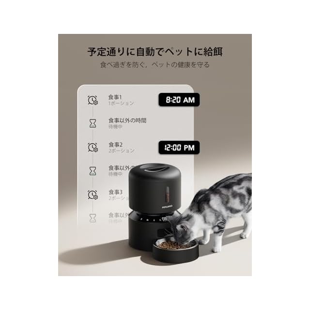 商品名:PETLIBRO 自動給餌器 猫 中小型犬用 定時定量 1日6食 自動餌やり機 4重鮮度保持 ツイストロック式蓋 水洗い可能 餌詰まり防止機能付き ステンレス製ボウル 手動給餌可 録音可 タイマー式 2WAY給電 日本語説明書付き 3L ブラック
