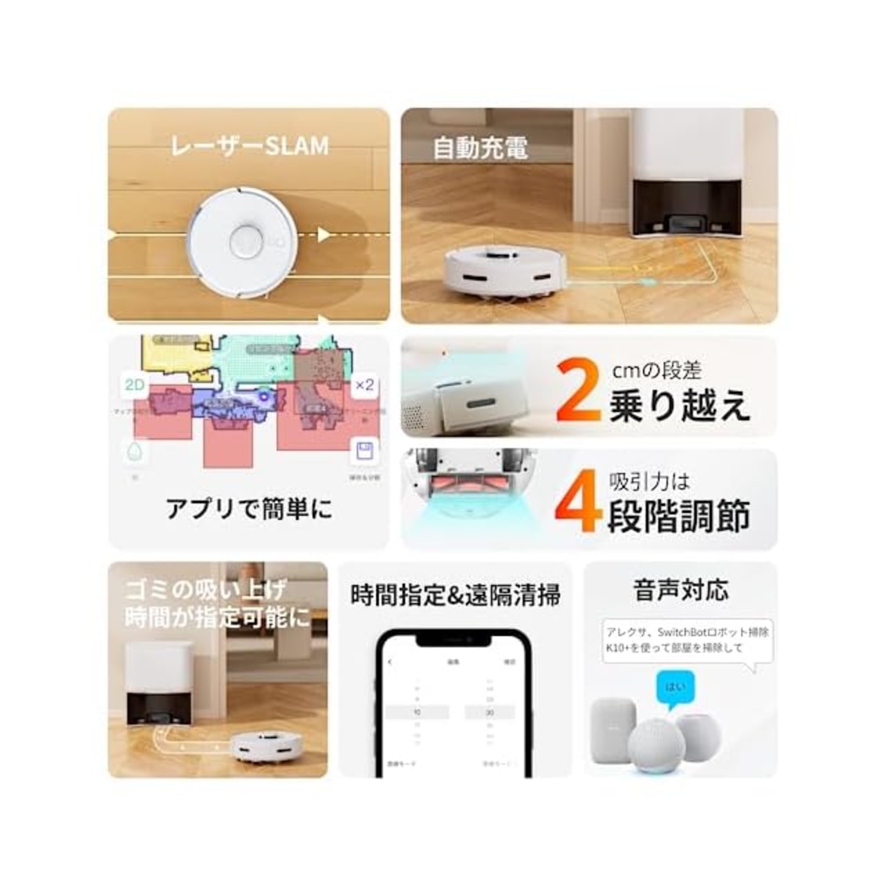 商品名:【超小型】SwitchBot ロボット掃除機 K10+ 90日間自動ゴミ収集 高精度マッピング 2500pa強力吸引 水拭き 禁止エリア 静音設計 遠隔操作 自動充電 落下防止 2.4GWi-Fi対応 Alexa Google Home IFTTT Siriに対応