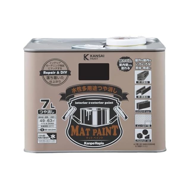商品名:カンペハピオ ペンキ 塗料 水性 つやけし 多用途 マットペイント ブラック 7L 日本製 00347654021070