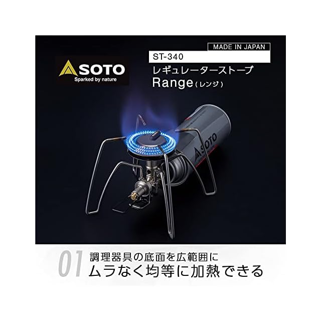 商品名:ソト(SOTO) 日本製 シングルバーナー マイクロレギュレーター搭載 (高火力 風に強い) CB缶 一体型 アウトドア 防災 キャンプ グループ レギュレーターストーブ Range (レンジ) ST-340 シルバー