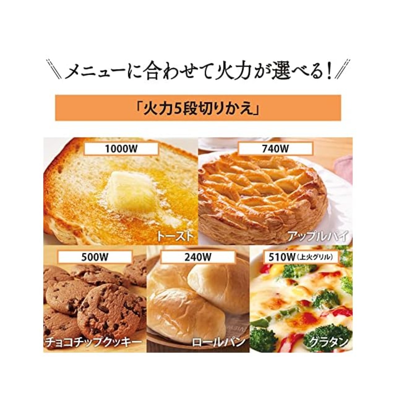 「上火グリル」つきで火力を5段階から選べる