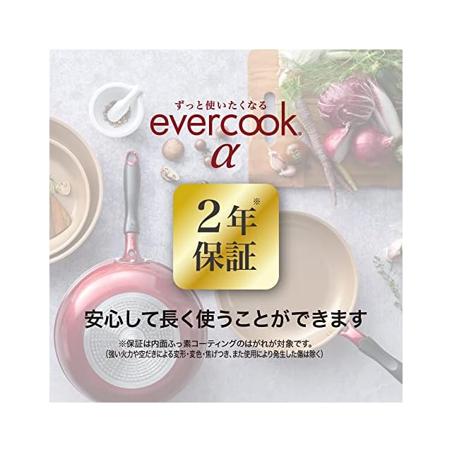商品名:エバークック フライパン 26㎝ オール熱源対応(IH対応) evercookα(エバークック アルファ) PFOA PFOS フリー ワインレッド 2年 ドウシシャ