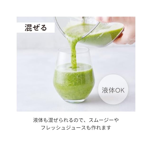 ✅【フードプロセッサーなのに液体も撹拌!なめらかなスムージーも】シリコンパッキン付きのカバーが液もれもしっかり防ぐから、スムージーやフレッシュジュースも作れます。