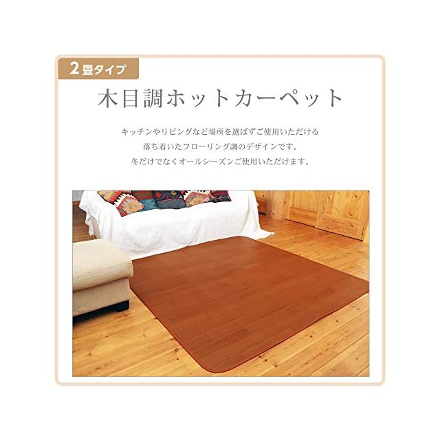 商品名:ライフジョイ ホットカーペット 2畳 本体 フローリング調 電気カーペット 176cm×176cm 暖房面切替 キッチン対応 防水 ブラウン JPJ201WB