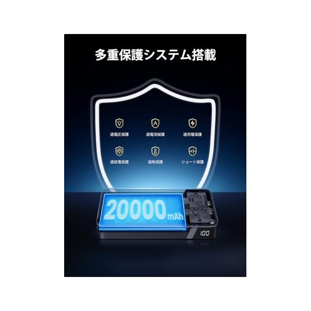 【★ 20000mAh大容量・業界先端の高倍率バッテリー応用 ★】100W高出力だけではなく、あんしんな20000mAh大容量バッテリーを内蔵しており、iPhone 15 Proを約4.5回、Galaxy S23 Ultraを約3回、MacBook Air M2 15”を約1回、DJI Mavic Proを約1.2回フル充電することが可能です。業界先端の高倍率バッテリー応用し、マルチ保護機能も搭載しています、過充電をはじめ、過放電、過電流、過電圧、ショート防止などの保護回路を搭載するなど、高性能とともに安全面の機能も充実しているモバイルバッテリーです。