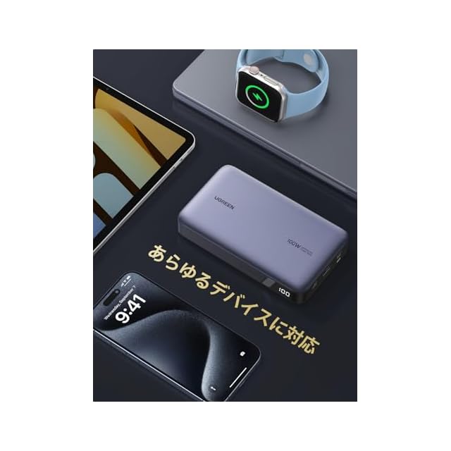 商品名:UGREEN 100W モバイルバッテリー PD・PPS 2.0対応 20000mAh 大容量 3ポート USB-C×2 USB-A×1 パススルー機能 低電流モード搭載 入力65W急速充電対応 マルチ保護機能搭載 PSE技術基準適合 MacBook Windows PC iPad Pro iphone17 Galaxy Android スマートフォン ノートPC その他 PB720
