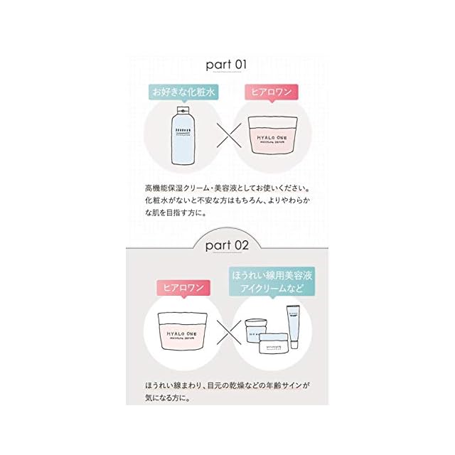 <美容ジェル>香料・着色料・パラベン不使用色<br><br> 原材料名:水、BG、スクワラン、メチルグルセス-20、パルミチン酸エチルヘキシル、ペンチレングリコール、グリセリン、ミリスチン酸ポリグリセリル-10、マカデミア種子油、加水分解ヒアルロン酸、加水分解ヒアルロン酸Na、カルボキシメチルヒアルロン酸Na、ヒアルロン酸ヒドロキシプロピルトリモニウム、加水分解ヒアルロン酸アルキル(C12−13)グリセリル、ヒアルロン酸Na、加水分解卵殻膜、レシチン、水添レシチン、コメヌカ油、カニナバラ果実油、オリーブ果実油、コメヌカスフィンゴ糖脂質、トリ(カプリル酸/カプリン酸)グリセリル、(アクリレーツ/アクリル酸アルキル(C10−30))クロスポリマー、ヒドロキシプロピルメチルセルロースステアロキシエーテル、オレイン酸ポリグリセリル−10、トコフェロール、トコトリエノール、ペンテト酸5Na、水酸化Na<br><br> 保管及び取扱い上の注意:<br> ・ 高温または低温の場所、直射日光のあたる場所には保管しないでください。<br> ・ 使用後は必ずカバーキャップをしめてください。<br> ・ 携帯時は、キャップがはずれ中味がでないようご注意ください。<br> ・ 一度使用した後、長期間保管してからの再使用はお避けください。<br> ・ 乳幼児の手の届かないところに保管してください。<br> ・ 使用期限を目安にご使用ください。<br><br><br> ご使用上の注意:<br> ・ お肌に異常が生じていないかよく注意して使用してください。<br> 化粧品がお肌に合わないとき即ち次のような場合には、使用を中止してください。<br> そのまま化粧品類の使用を続けますと、症状を悪化させることがありますので、皮膚科専門医等にご相談されることをおすすめします。<br><br> 1. 使用中、赤味、はれ、かゆみ、刺激、色抜け(白斑等)や黒ずみ等の異常があらわれた場合<br> 2. 使用したお肌に、直射日光があたって上記のような異常があらわれた場合<br> ・ 傷やはれもの、湿疹、かぶれ、ただれ、色素異常などの症状がある部位にはお使いにならないでください。<br> ・ 目に入った場合は、すぐに水かぬるま湯で洗い流してください。<br>