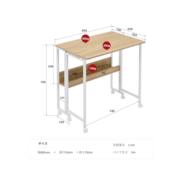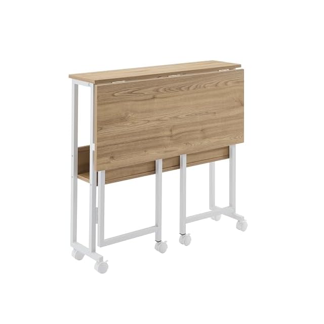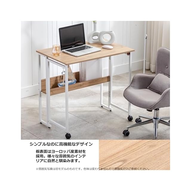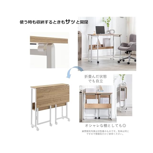 【高機能折り畳み式デスク】天板下のボタンを押すだけで、簡単に折り畳むことができます。インテリアを置く物置や、ドレッサー、キッチンでのサイドテーブルとしても活用可能 。オフィスや、作業台、子供用の勉強机、在宅ワークなど多目的用途で使用できます。