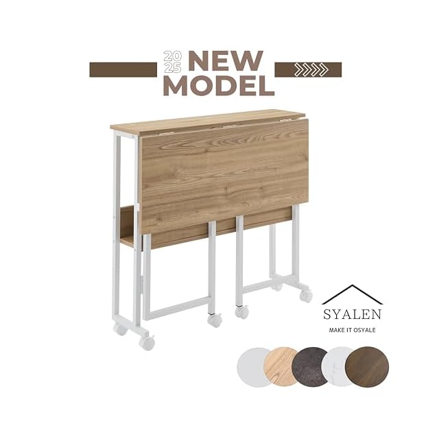 SYALEN 折りたたみデスク テレワークデスク 幅80 奥行53 高さ75cm 省スペース 多機能テーブル 机 コンパクデスク メラミン加工 木製 モニターアーム取付対応 ナチュラルウォルナット/白 SLDK-01NA80A