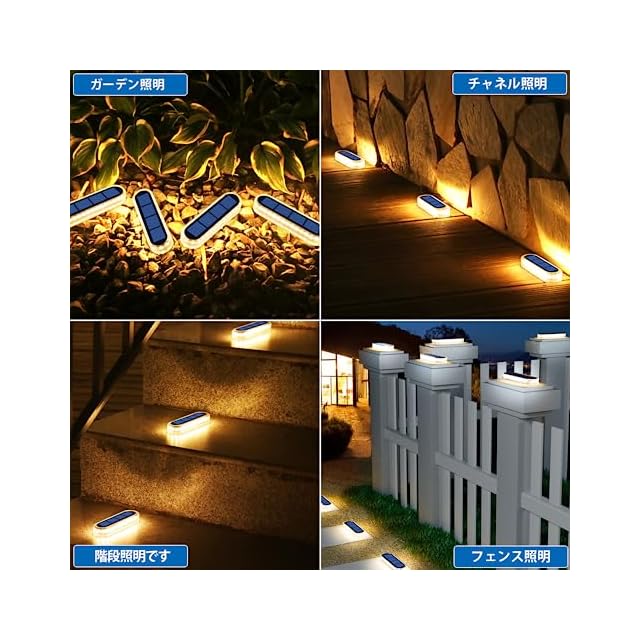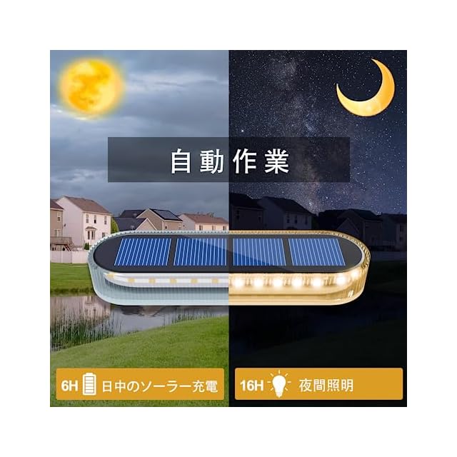 ソーラーライト 屋外はIP68の最高の防水等級に達し、錆びやすい部品はありません。 内蔵1000mAhバッテリー容量、完全な日光の下で日中6時間以上を充電し、自動的にライトの作用の下で夜間点灯 センサー搭载、照明は12〜15Hまですることができます。 30ランプビーズ、360°照明することができ、ランプの周囲と足を照らすのに十分な暖かく明るい。 電源配線なし、簡単にインストールするには、装飾的なパティオの照明に最適な任意の場所に配置することができます。