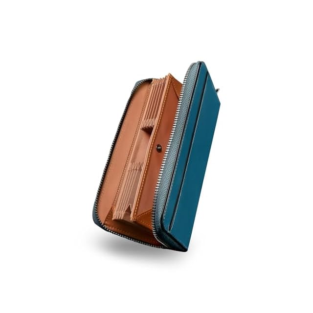 財布 メンズ 長財布 栃木レザー 本革 ボックス型の小銭入れ 大容量 カード縦入れ カード16枚 ファスナー 通帳ポケット 一流の革職人が作る 紳士 ビジネス 金運 (ブルー)