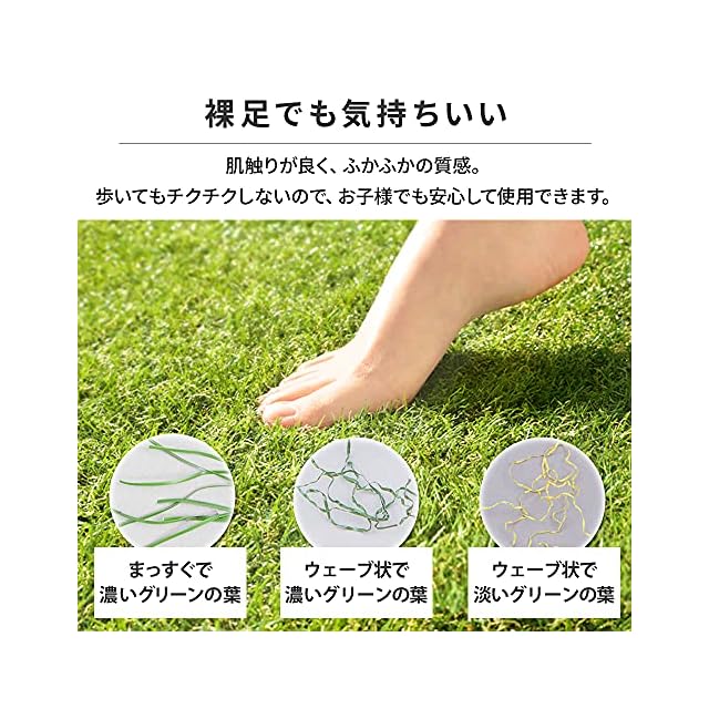 こだわりの質感で、天然の芝生のような触り心地。3種類の色味と質感の異なる葉を混ぜることで、リアルな風合いと触感を再現。