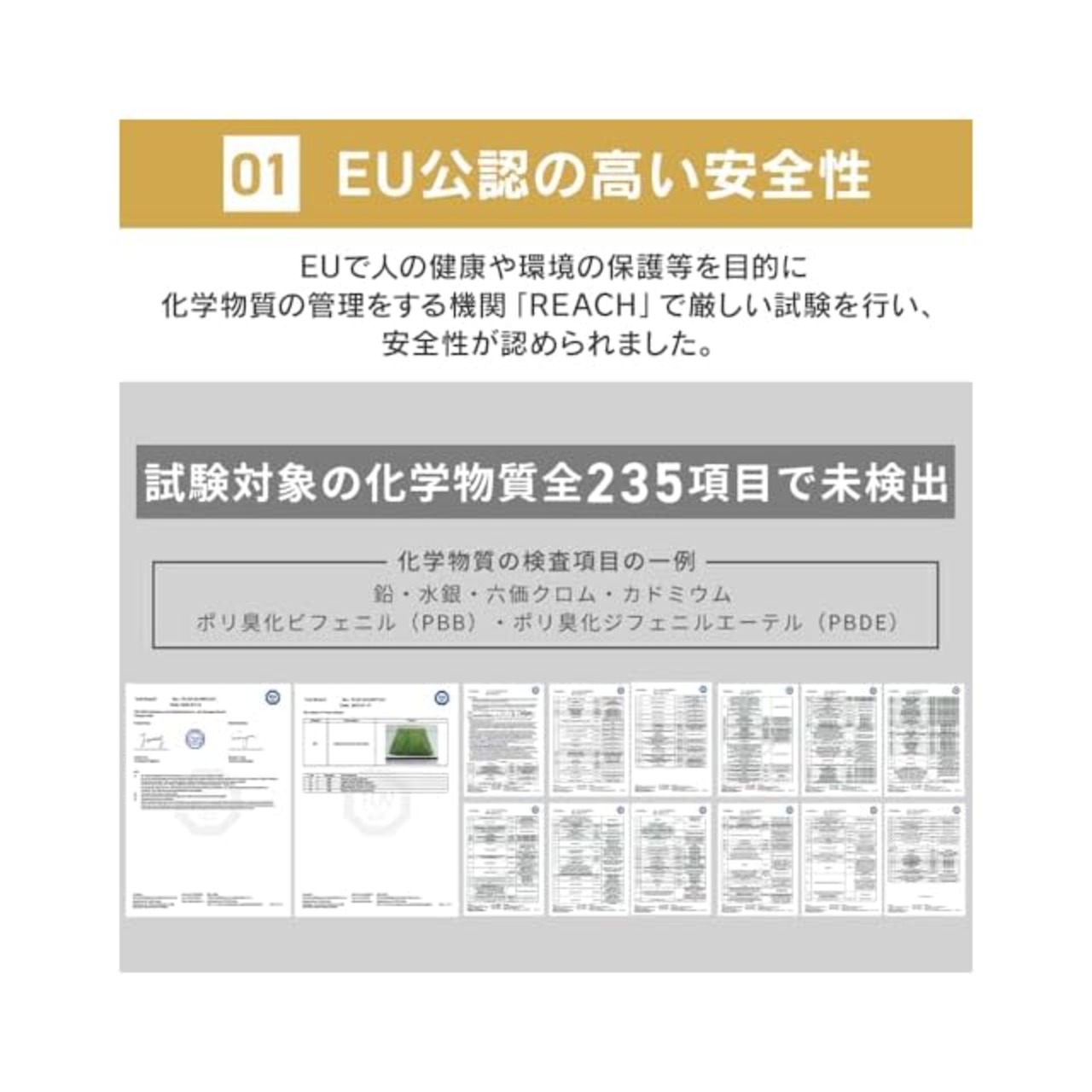 お手入れ不要で、特殊バッキング剤使用で水はけもよく、水たまりを防げます。