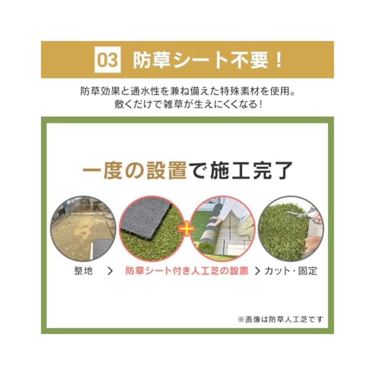 防草効果と通水性を兼ね備えた特殊素材を使用しているため、敷くだけで雑草が生えにくくなります。