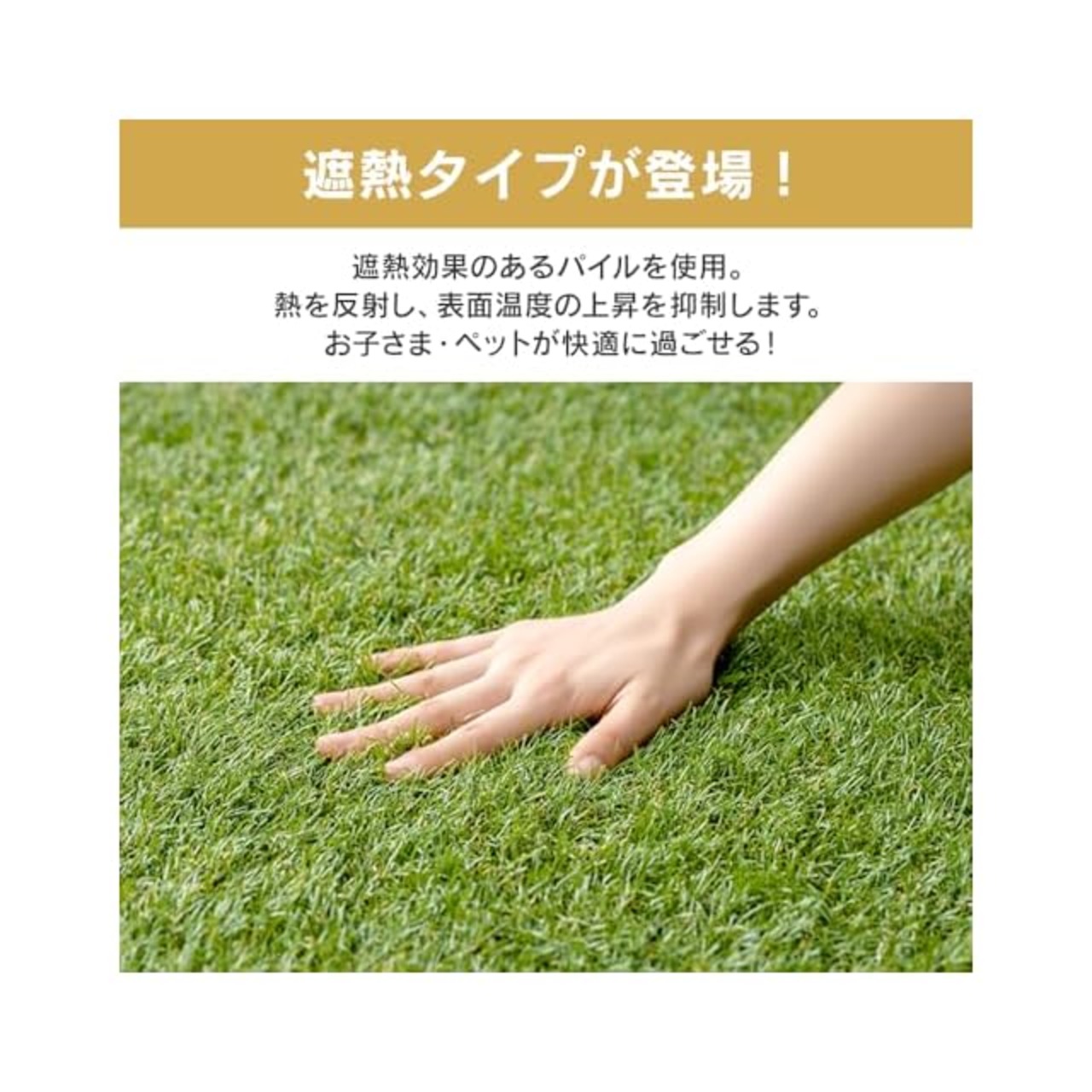 遮熱効果のあるパイルを使用した人工芝です。熱を反射し、表面温度の上昇を軽減します。