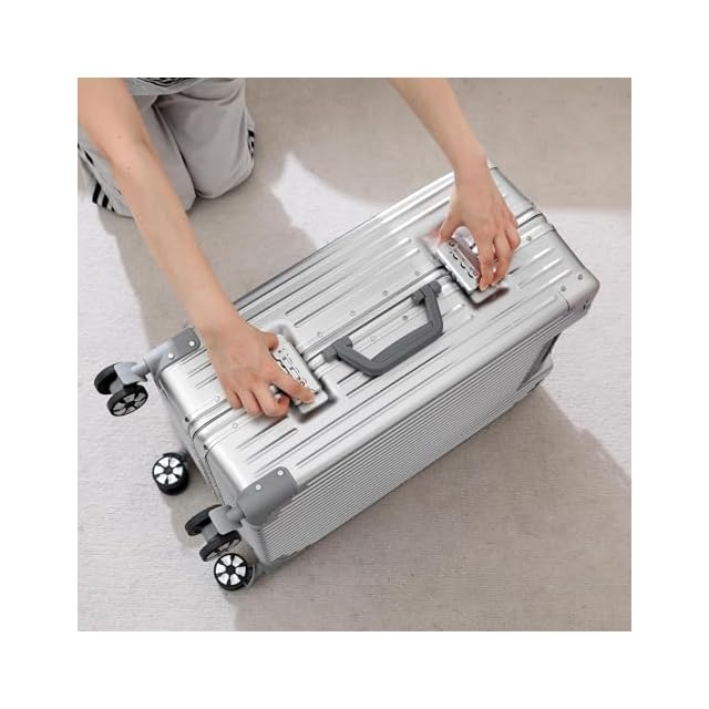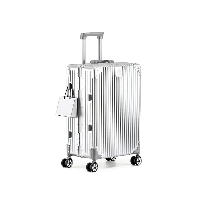 [WanderMore] 工場直売 スーツケース 機内持ち込み アルミフレームタイプ 大型 キャリーケース 超軽量 大容量 キャリーバッグ シルバー 四角い 耐衝撃 TSAダイヤロック レトロ 360度回転 静音 ダブルキャスター ビジネス 旅行 出張 Mサイズ 4泊6日 60L