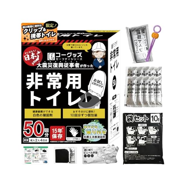 【大震災復興従事者が全力で作り上げた】 簡易トイレ 非常用トイレ 防災グッズ 災害用トイレ (+車用トイレ&袋留クリップ おまけ付き) 災害用 ポータブルトイレ 防災 トイレ 災害 車 渋滞 簡易トイレ(50回分)