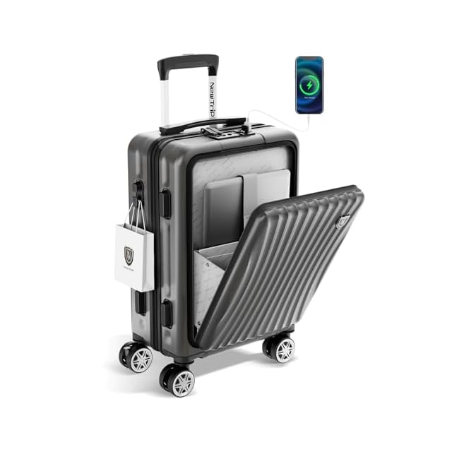 商品名:[New Trip] スーツケース 機内持ち込み フロントオープン キャリーケース Sサイズ USBポート付き ストッパー付き YKKファスナー TSAロック 静音 ダブルキャスター ビジネス 出張 1-3泊 40リットル ガンブラック