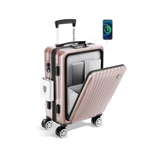 [New Trip] スーツケース 機内持ち込み フロントオープン キャリーケース Sサイズ USBポート付き ストッパー付き YKKファスナー TSAロック 静音 ダブルキャスター ビジネス 出張 1-3泊 40リットル ローズゴールド