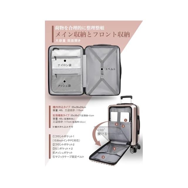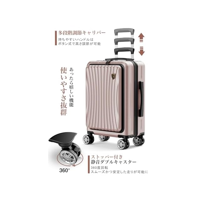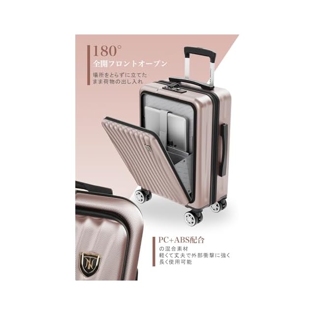 商品名:[New Trip] スーツケース 機内持ち込み フロントオープン キャリーケース Sサイズ USBポート付き ストッパー付き YKKファスナー TSAロック 静音 ダブルキャスター ビジネス 出張 1-3泊 40リットル ローズゴールド