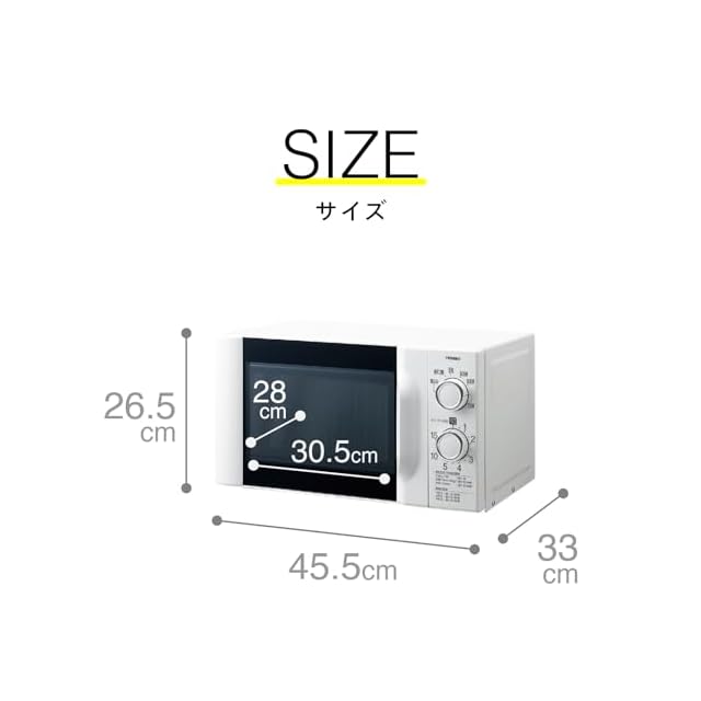 庫内容量:17L、庫内有効寸法(約) :幅305mm×奥行き280mm×高さ175mm、ターンテーブル直径(約):245mm、電源コード長(約):1.4m