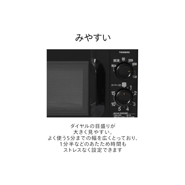 商品名:TWINBIRD(ツインバード) 電子レンジ 【東日本専用(50Hz)】 大きな文字で見やすい 単機能 一人暮らし ターンテーブル 17L 6段階出力切替 700W 15分タイマー ブラック DR-D419B5