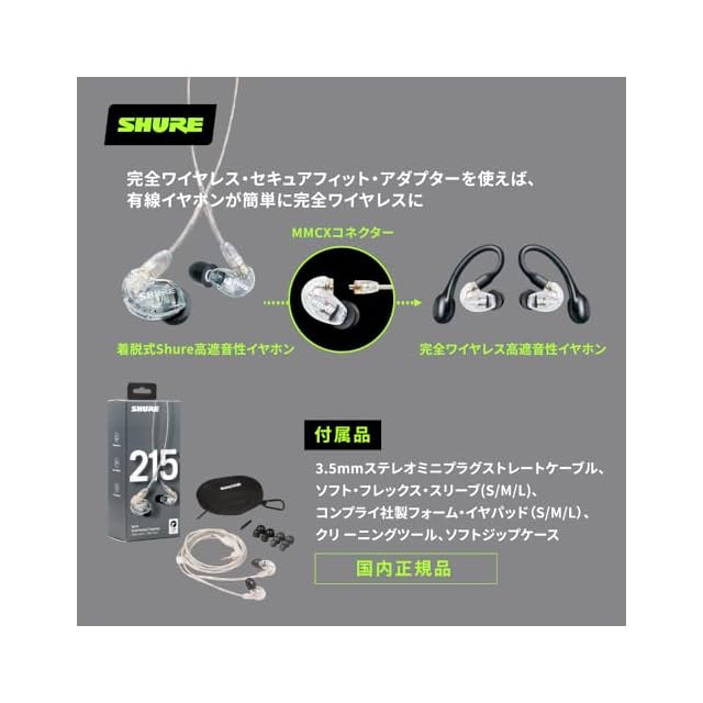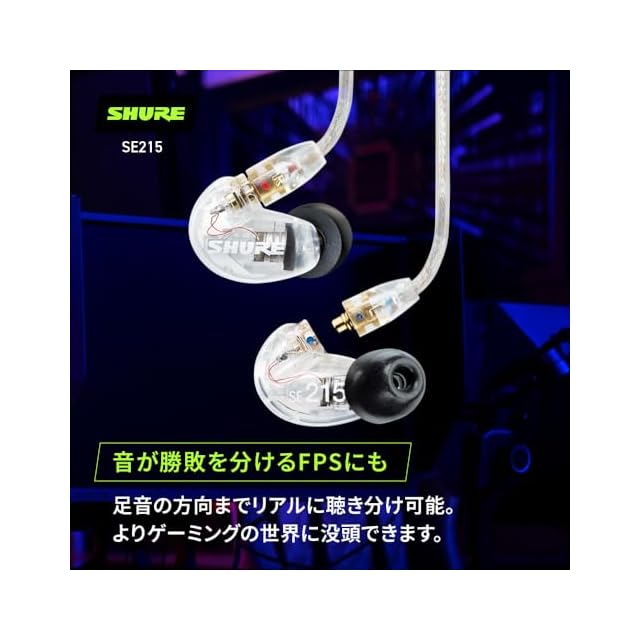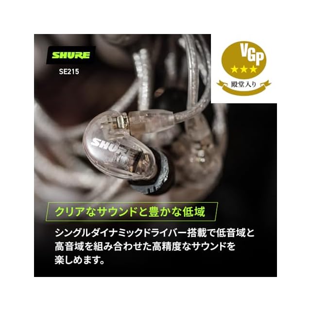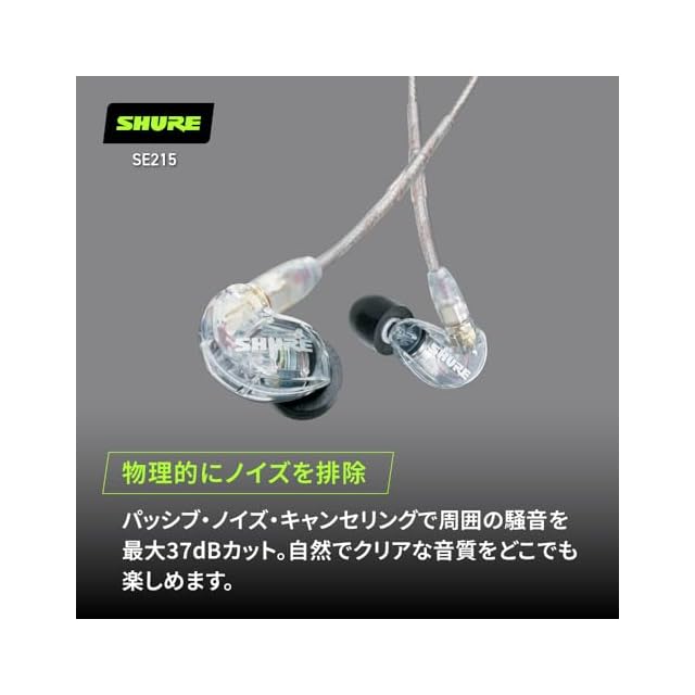商品名:【VGP 殿堂入り金賞】SHURE シュア イヤホン 有線 SE215-CL-A クリア : 高遮音性 ゲーム ゲーミング カナル型 ワイヤレス変換可(別売) MMCX リケーブル プロ仕様 イヤモニ モニター 配信 音楽 オーディオリスニング レコーディング 録音 楽器 在宅勤務 リモートワーク テレビ ラジオ ケーブル長162 cm 【国内正規品】