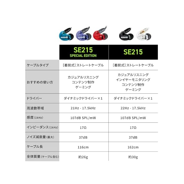 ✅【同梱物】2年、SE215 高遮音性イヤホン、3.5mmステレオミニプラグストレートケーブ ル、ソフト・フレックス・スリーブ(S/M/L)、コンプライ社製フォーム・イヤパッド(S/M/L)、クリ ーニングツール、ソフトジップケース