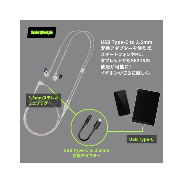 ✅【3.5mmジャック非搭載のデバイスでも利用可能】USB Type-C to 3.5mm 変換アダプターを使えば、3.5mmジャックがないUSB Type-C対応のPCやスマートフォン、タブレットでもSE215をご利用いただけます。※変換アダプターは別売りです。