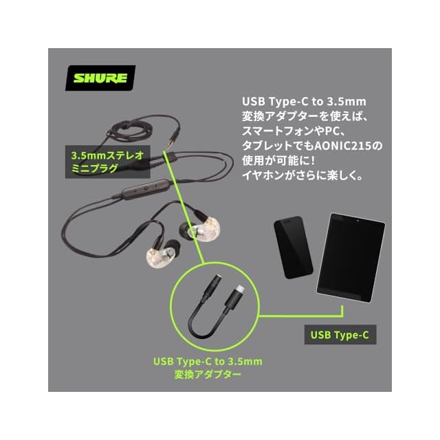 商品名:SHURE シュア イヤホン AONIC 215 有線 マイク付き SE215DYCL+UNI-A クリア 高遮音性 ゲーム ゲーミング カナル型 ワイヤレス変換可(別売) MMCX リケーブル プロ仕様 配信 音楽 オーディオリスニング レコーディング 録音 楽器 在宅勤務 リモートワーク テレビ ラジオ ケーブル長127 cm 【国内正規品/メーカー2年】