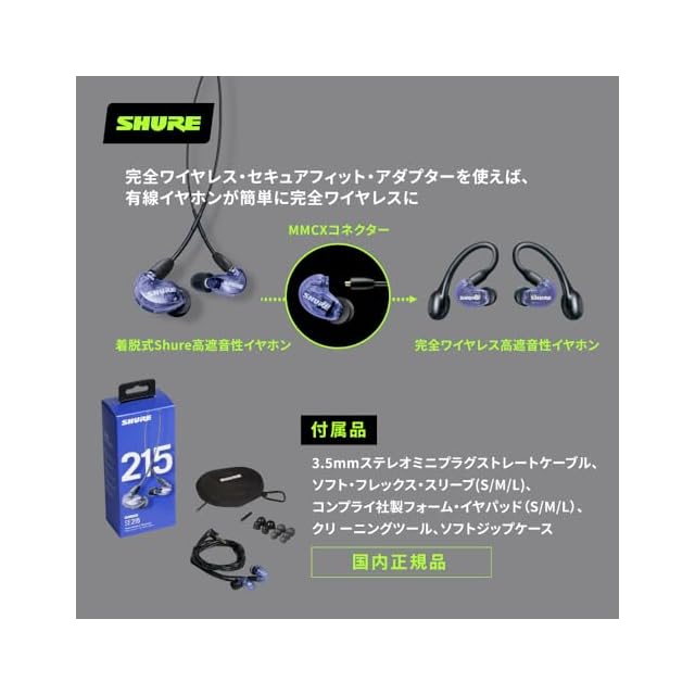 商品名:【VGP 殿堂入り金賞】SHURE シュア イヤホン : 有線 SE215SPE-PL-A パープル 高遮音性 ゲーム ゲーミング スペシャルエディション カナル型 ワイヤレス変換可(別売) MMCX リケーブル プロ仕様 低音強化 配信 音楽 オーディオリスニング レコーディング 録音 楽器 在宅勤務 リモートワーク テレビ ケーブル長116 cm 【国内正規品/メーカー2年】