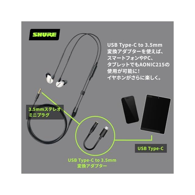 ✅【3.5mmジャック非搭載のデバイスでも利用可能】USB Type-C to 3.5mm 変換アダプターを使えば、3.5mmジャックがないUSB Type-C対応のPCやスマートフォン、タブレットでもAONIC 215をご利用いただけます。※変換アダプターは別売りです。