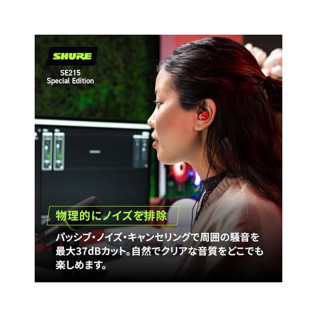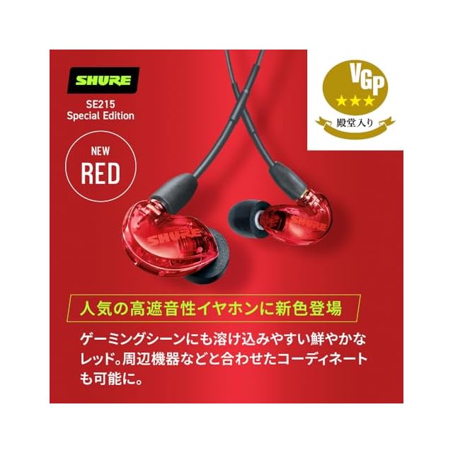 【VGP 殿堂入り金賞】SHURE シュア イヤホン 有線 SE215SPE-RD-A レッド 高遮音性 ノイズキャンセリング ゲーム ゲーミング スペシャルエディション カナル型 ワイヤレス変換可(別売) MMCX リケーブル プロ仕様 低音強化 配信 音楽 オーディオリスニング レコーディング 録音 楽器 在宅勤務 リモート ケーブル長116 cm 赤 RED 【国内正規品/メーカー2年】