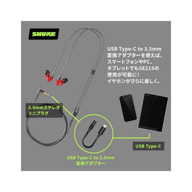 ✅【3.5mmジャック非搭載のデバイスでも利用可能】USB Type-C to 3.5mm 変換アダプターを使えば、3.5mmジャックがないUSB Type-C対応のPCやスマートフォン、タブレットでもSE215をご利用いただけます。※変換アダプターは別売りです。