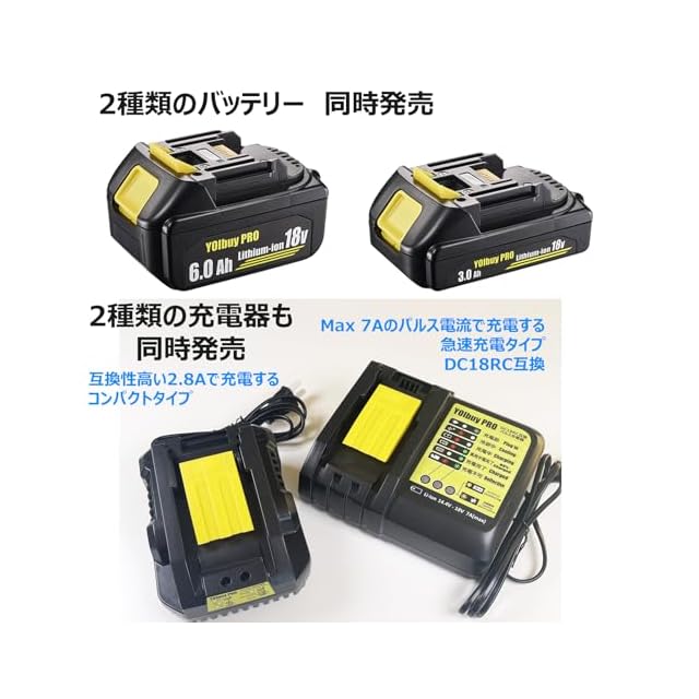 YOIbuy PROが作った18Vの互換バッテリーは、2年をかけて企画・開発されました。純正品に最も近い品質と安全性を実現するため、高品質なAグレードのセルを使用し、実容量6.0Ahと最大放電電流60Aを備えています。純正急速充電器も使用可能で、電動工具を使用するプロの方にも満足いただける高性能・高コスパの製品です。さらにYOIbuy PROは常に「安全」を第一に、バッテリーの保護機能も手抜きがありません。各セル監視する過充電、過放電保護はもちろん、充放電温度監視、短絡保護、自己放電保護機能も実装する全保護バッテリーです。 「安心」もYOIbuy PROがお客様に提供したい買い物体験です。本商品は産経省に登録済みの正規品販売品。必要な検査、検証はもちろん、メーカーとアフタサービスも心を込めて真摯に対応いたします。