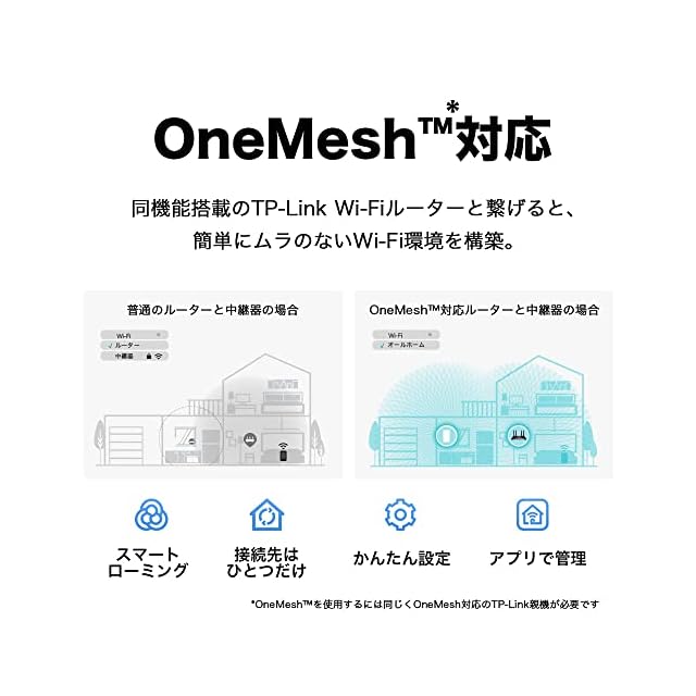 [メッシュ対応] EasyMeshとOneMeshに対応。同機能のメッシュ対応ルーターと接続することでメッシュWiFi環境を構築。シームレスでさらにストレスフリーなWi-Fi環境を実現