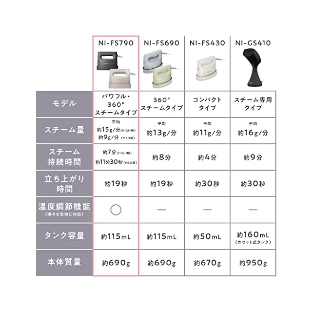 スチーム量が約36%アップ (※社従来品2022年発売NI-FS780との比較(当社調べ))。