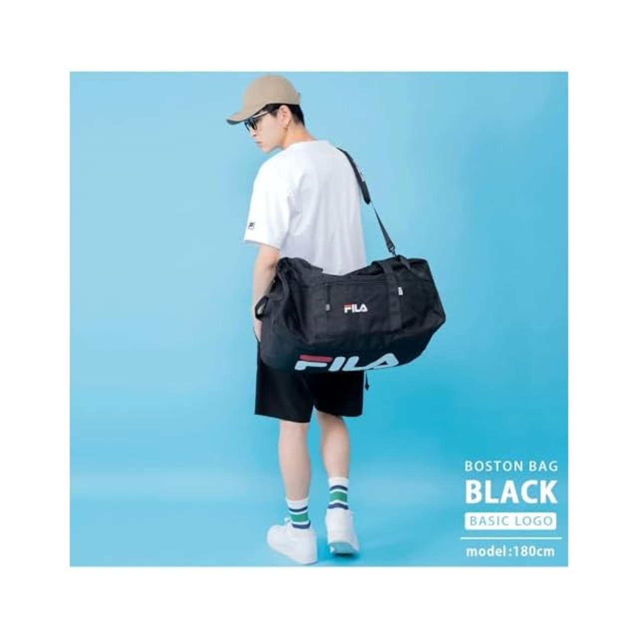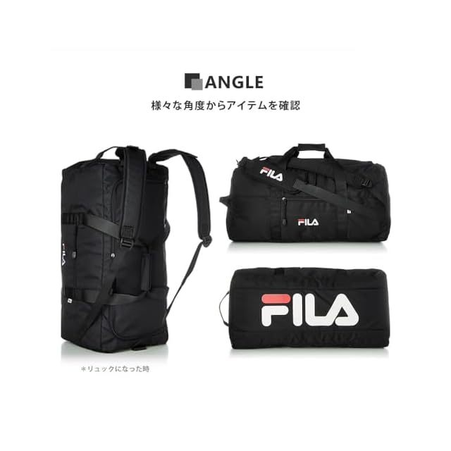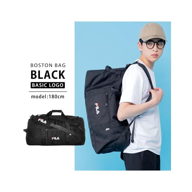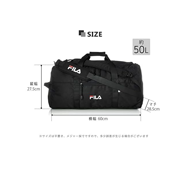 [フィラ] ボストンバッグ リュック 大容量 50L 3WAY 旅行バッグ ショルダーバッグ スポーツバッグ 2タイプロゴ 筆記体 正規体 ベルド取り外せる 大型 収納 FM2276-FM2334 ブラック